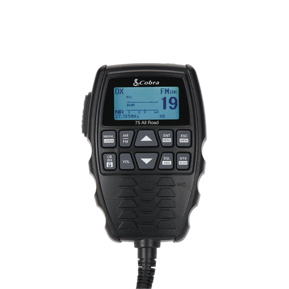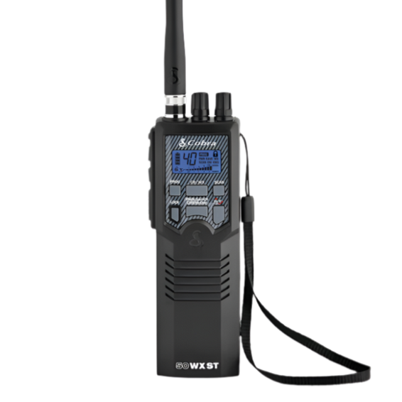 Portable, battery-powered CB Radios with removeable antennas. Mountable for in-vehicle operation.