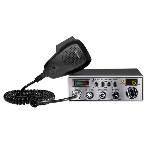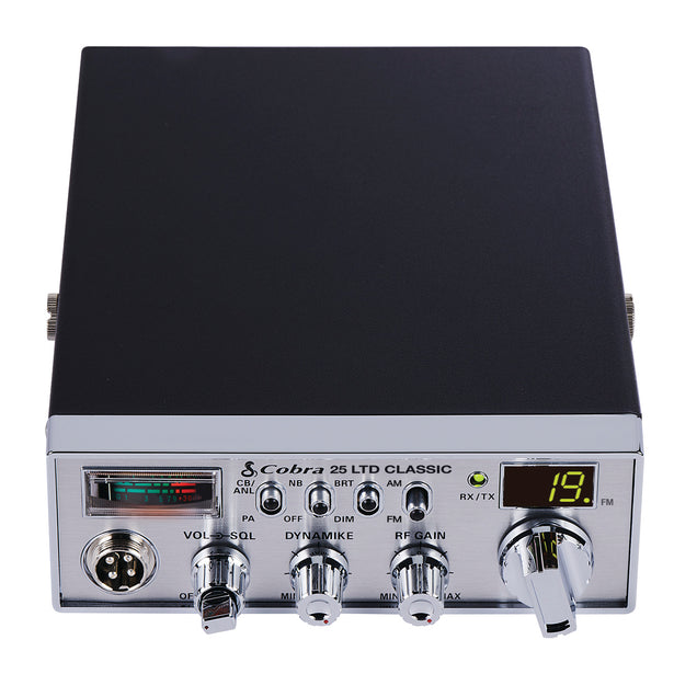 The 25 LTD CB radio offers new dual-mode AM/FM for enhancing communication clarity and delivering superior sound quality. As Cobra's most compact Professional CB, the Classic maintains the exceptional performance, durability, and user-friendly controls as the 29 LTD. Equipped with advanced features such as Noise Blanker, Automatic Noise Limiter, and Dynamike for voice amplification, along with dimmer control, the 25 LTD Classic ensures an unparalleled communication experience.